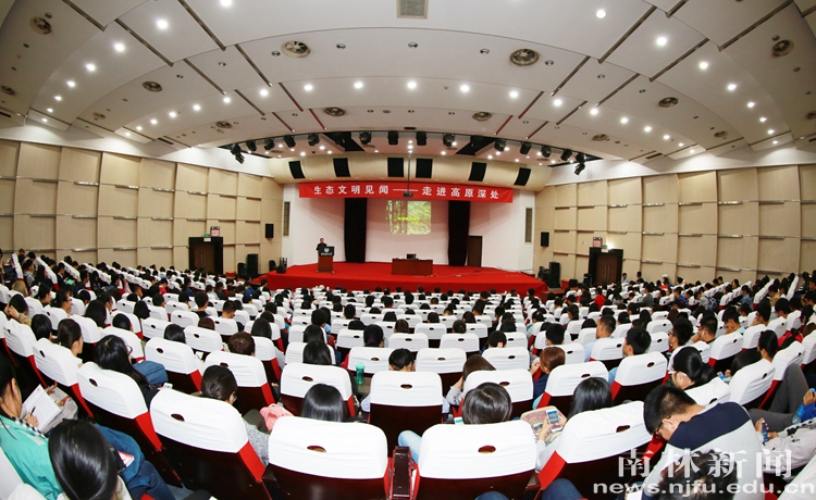 【南林新闻中心讯】10月12日下午,一场生动的形势政策教育课在教五楼报告厅举行。主讲人是20世纪80年代曾风靡全国的长篇报告文学《小木屋》中的主人公——著名高原生态学家、我校1955届校友徐凤翔教授。她结合自己几十年来的人生经历,特别是30多年从事高原生态学研究的特殊经历,以“生态文明见闻——走进高原深处”为题与南林学子就生态文明议题进行了一场深情的对话。