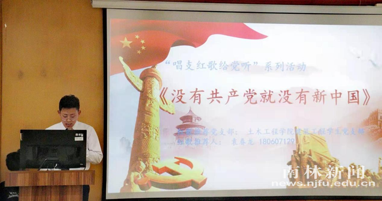 【南林新闻中心讯】中国共产党成立100周年之际,作为与伟大的时代同向同行的青年人,6月17日下午,土木工程学院毕业生党员们在学院报告厅自发组织、自编自导、自排自唱,唱响红歌《没有共产党就没有新中国》,用一堂生动而有内涵的音乐党课寄语新党员,以一种难忘而独特的方式告别朝夕相处的校园。