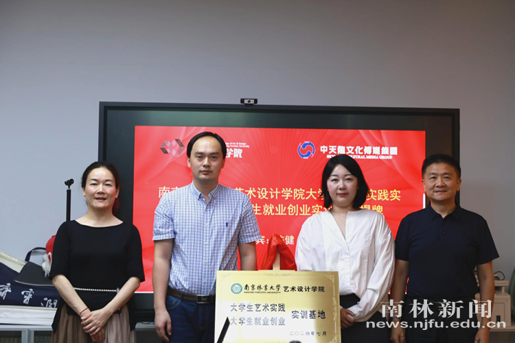 【南林新闻中心讯】为了进一步丰富大学生的社会实践模式,深化校企合作,推动产学研深度融合,7月3日,南京林业大学艺术设计学院团委与中天龙文化传媒有限公司在艺术设计学院203会议室举办了“校企共建,履践致远”共建暨社会实践基地揭牌仪式。南京林业大学艺术设计学院党委书记陶文娟,学院党委副书记、副院长陈健,正科级组织员、本科生2021级辅导员唐于维一,研究生辅导员朱婷 ,本科生2021级辅导员曹利芳。中天龙投资集团副总裁施文斌,中天龙文化传媒有限公司副总经理、文创中心总监祁韵,中天龙文化传媒有限公司设计总监魏文璇和中天龙文化传媒有限公司品牌运营白笑颜共同参加本次活动。会议由艺术设计学院团委书记、学工办主任王春主持。