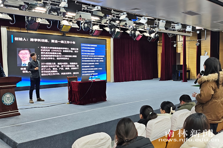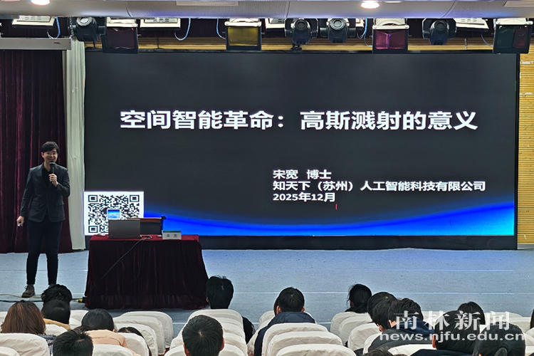 【南林新闻中心讯】岁暮天寒梅香暗涌,人工智能赋能文化传承新实践。12月15日,淮安校区在教学主楼报告厅成功举办了“高斯溅射重建和生成的世界”学术报告讲座,并在教学主楼南广场开展了“云中漫步中国”AI沉浸式体验秀活动。活动特邀知天下AI创始人、北京市中关村“高聚工程”领军人才、苏州工业园区科技领军人才、中国遥感优秀成果一等奖获得者宋宽担任主讲嘉宾,知天下联合AI创始人陈艺军校友参与互动,活动由校区党政办公室主任李新宇主持,吸引300余名师生师生齐聚一堂,共探AI技术与文化传承的融合之道。