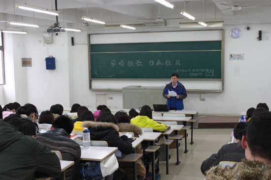 【南林新闻中心讯】“登上那钟山极目眺望,玄武湖畔你郁郁苍苍。五脉汇合源远流长,学统端正四海名扬......”。2月26日下午,高昂奋进的歌声从教学五楼飘扬开来,园林院院27个班级同时举行了“学唱校歌 传承校风”主题班会活动。