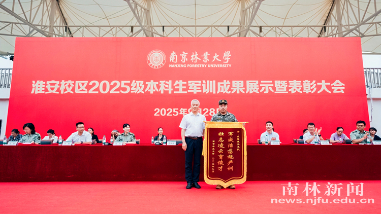 【南林新闻中心讯】9月28日,我校2025级本科生军训成果展示暨表彰大会分别在白马校区田径场和淮安校区田径场举行。副校长李维林、张晓琴,中国人民解放军32238部队大校政治委员鲍俊成、中校副主任陈燕平,武警淮安支队副支队长吕炎等出席会议,校军训工作领导小组成员以及淮安校区、白马校区军训团全体成员参加大会。
