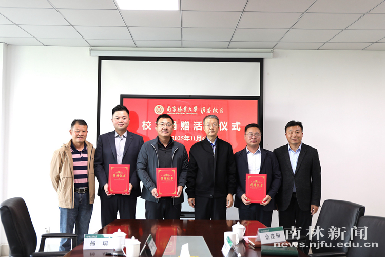【南林新闻中心讯】11月4日上午,学校在淮安校区举办校友集中捐赠活动仪式。副校长、淮安校区管委会主任赵剑锋出席仪式并讲话。江苏中设股份淮安分公司总经理、1999级校友程雷,江苏云盈环保科技有限公司总经理、2003级校友杨瑞,江苏捷达交通工程集团有限公司淮安分公司总经理、2009级校友谢飞,校友工作办公室、淮安校区负责人以及师生代表等参加仪式。