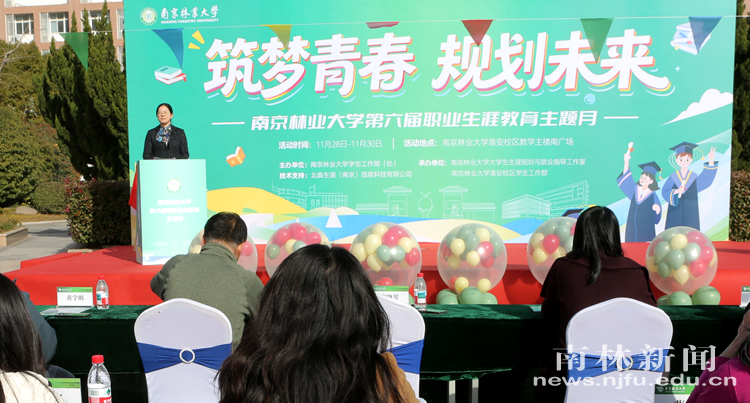 【南林新闻中心讯】为传播生涯规划理念,增强学生职业发展意识,11月28日上午,南京林业大学第六届职业生涯教育主题月暨2025年生涯嘉年华活动在淮安校区教学主楼南广场正式启动。副校长张晓琴出席活动并致辞。淮阴工学院招生就业处、淮安市人才中心以及我校学生工作部(处)、淮安校区、各学院相关负责人、师生代表和企业代表等参加活动。
