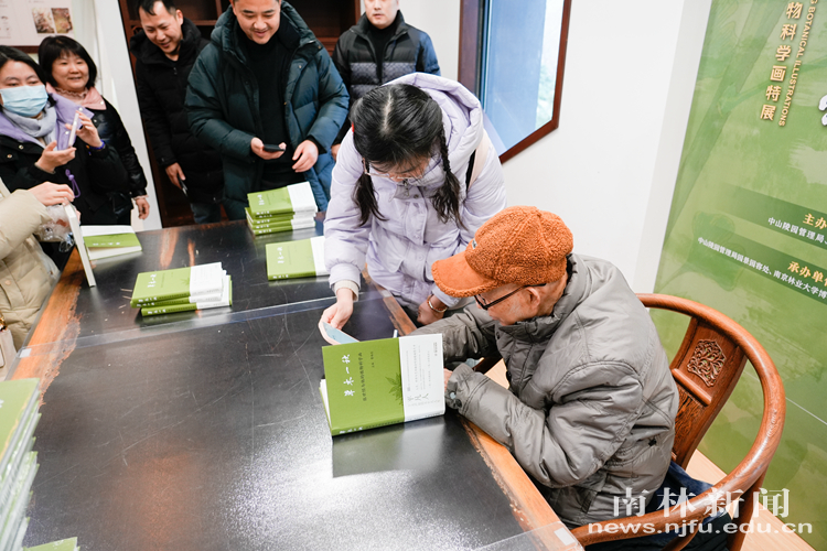 现场还举行了《草木一秋——张世经与他的植物科学画》的宣传推广仪式,张世经老师亲自为到场观众签名赠书。该书由我校曹福亮院士主编,南京出版社出版。