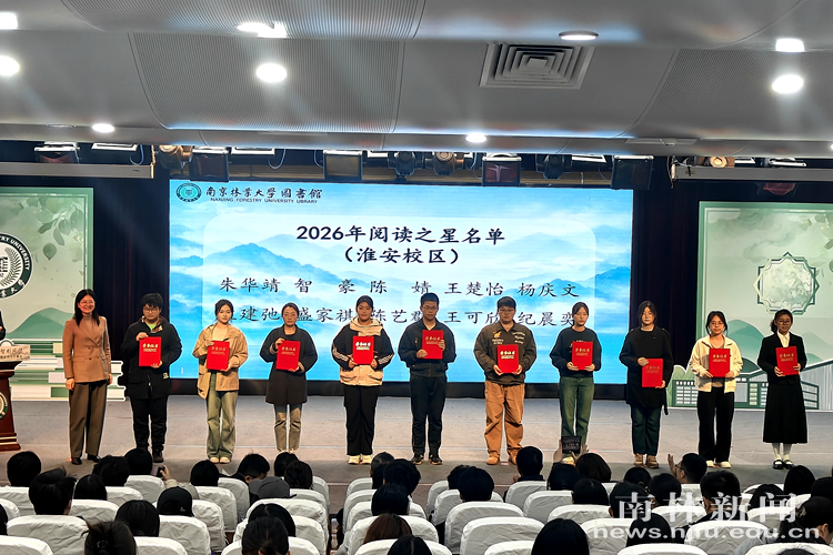 开幕式上,张晓琴为淮安校区荣获2025年度“林韵书香·笃学星”的学生颁发荣誉证书,并共同为南京林业大学第十六届读书节揭幕。淮安校区学生代表王可欣、教师代表陈沁先后发言,分享阅读感悟与成长体会,传递爱读书、读好书、善读书的校园风尚。